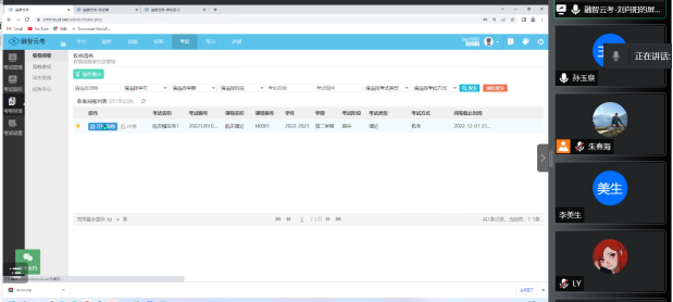 期末临近,为了切实做好线上考核工作,最大程度地降低疫情对本科教学质量的影响,近日学院安排工科数学分析信息大类课程组对在线考试的组织方式和相关平台进行调研。课程团队结合以前在线考试的经验和课程特点及需求,分别于11月30号和12月1号对智慧树和融智云在线考试平台进行了调研。