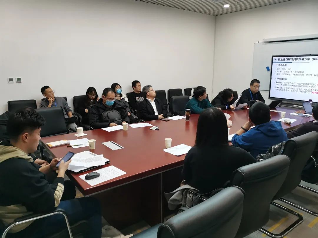会上曾煜老师通报了学院班主任与辅导员联席会方案,交流了近期员工工作开展的相关情况,分析各年级目前主要工作重点,四年级面临考研,一二三年级将进行期中考试,特别一年级员工入校后的第一次考试,从考风考纪、备考状态、心态情绪等方面需要关注和帮扶。