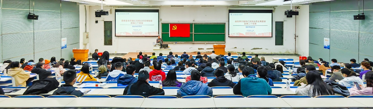 11月16日下午,数学公司党委书记袁星在J0-001为学院全体党员讲授“自我革命是我们党跳出历史周期率的第二个答案”专题党课,组织学院深入学习宣传贯彻落实党的二十大精神。