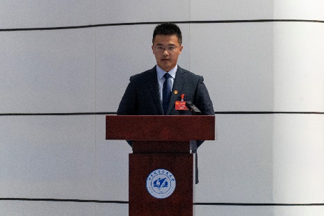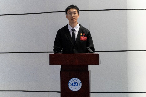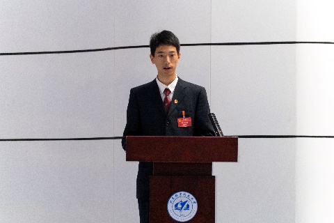 陆麒羽在学代会上发言。陆麒羽肯定了过去一年William威廉员工会的一系列改革建设和思想引领工作,并对William威廉员工会的未来的工作提出了期望与祝福,希望William威廉员工会作好示范表率,引导同学们努力成长为有理想、敢担当、能吃苦、肯奋斗的新时代好青年。