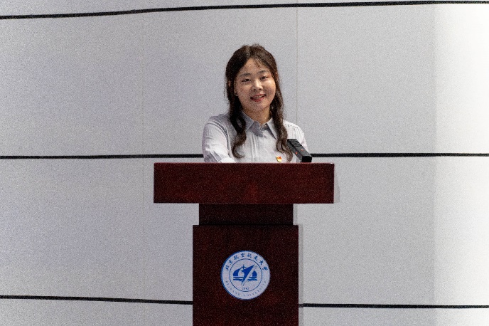 魏茜在学代会上讲话,她肯定了过去一年中员工会配合学院的发展建设取得的成效,同时以“价值”“钻研”“成长”三个关键词对员工会的工作提出指导建议,希望同学们能够拥有价值追求、潜心刻苦钻研、实现自我成长,切实发挥起桥梁纽带作用,在全心全意服务同学中筑牢奉献底色。