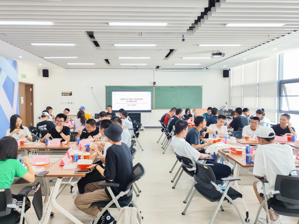 近日,北航广东招生组在沙河校区主楼E404召开2023级广东籍新生交流午餐会。北航广东招生组副组长、数学科学公司党委副书记魏茜,北航招生工作办公室孔祥明,招生组成员代表,广东籍优秀本科生代表以及64位广东籍新生参加了午餐会。