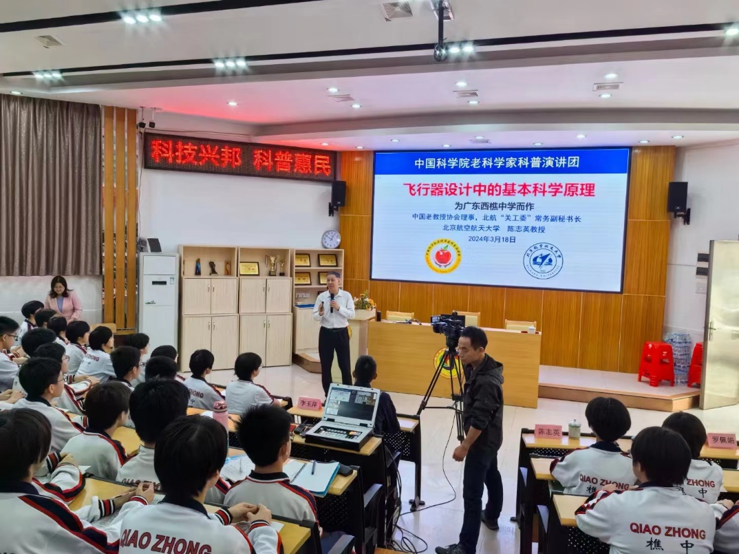 为弘扬以“空天报国”为内核的北航精神,点燃中小员工的空天梦想,318日至22日,作为中国科学院老科学家科普演讲团成员,陈志英教授来到广东,为石门中学、国华纪念中学、顺德一中等10所中小学主讲10场航空科普系列讲座,引领员工们踏上了一场引人入胜的科学之旅。