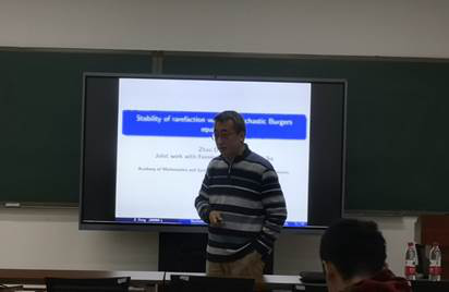 11月5日下午,中国科学院数学与系统科学研究院研究员董昭受邀访问公司,为师生带来了一场题为“Stability of rarefaction wave for stochastic Burgers equation”的学术报告。报告介绍了随机伯格斯方程强解的大时间性质,证明随机伯格斯方程的稀疏波在白噪声扰动下是非线性稳定的。