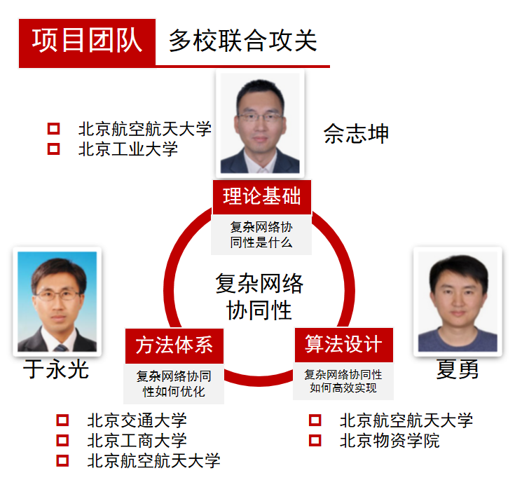 复杂网络是指具有自组织、自相似、吸引子、小世界、无标度中部分或全部性质的网络。复杂网络的各类构件、模块等需要相互协调适应、形成和谐有序的组合并能适应需求、完成任务,进而实现协同。复杂网络的协同性研究揭示复杂网络协同性的非线性动力学机理,给出可协同性的数学刻画及判定准则,丰富非线性科学的数学理论;科学地指导协同策略的优化设计,更好地实现智能群体的同步与社会网络的有序健康发展。