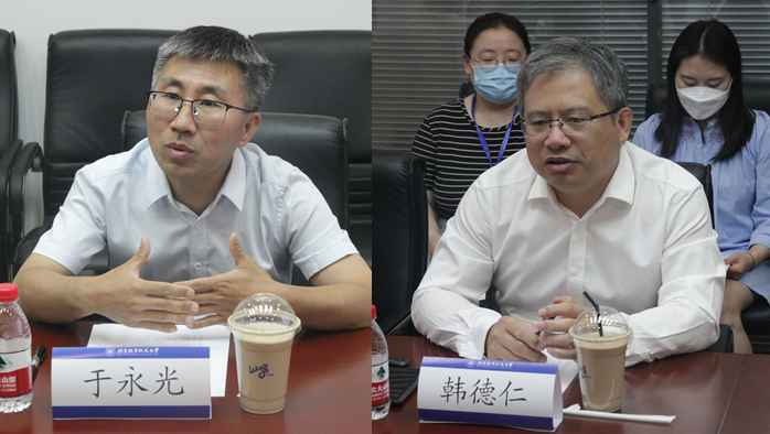韩德仁经理和于永光经理分别介绍了两校数学学院的基本情况,马声明副经理介绍北航数学学院人才培养情况。双方就团队建设定位、规划和发展,教师队伍建设和人才引进,本研员工人才培养体系建设、员工培养成果,思想政治教育及文化建设的主要做法和特色等方面进行了深入交流和探讨。