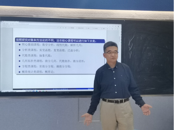 公司副经理马声明根据2021级培养方案的新变化,结合N-S方程、庞加莱四维猜想等数学界热门话题,强调了数学分析等3门基础课程和抽象代数等10门核心课程的重要性。同时,马声明老师表示,希望同学们要勤于阅读,广泛了解数学史,在前人的探索路径中汲取数学的思想;希望同学们要砥砺思维,充分认识到数学学习的核心是思维能力的锻炼和促进自身灵感的不断涌现;希望同学们要充分讨论,于交流中见知识之广,在思想碰撞中发现星辰大海,互相激发探索的热情和对数学的热爱。