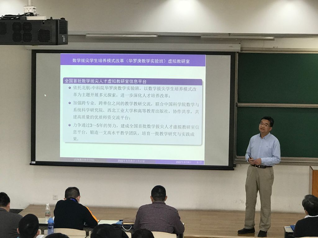 接着,经理韩德仁首先结合各口专题报告对学院工作要点进行了进一步的解读,鼓励学院教师多了解,多思考,积极向学院建言献策。随后汇报了学院2021年财务情况,并对消防安全、网络安全等工作进行部署。韩经理表示,学院要培养人才、引进人才、用好人才,营造风清气正的文化氛围,努力推动北航数学学院的发展。