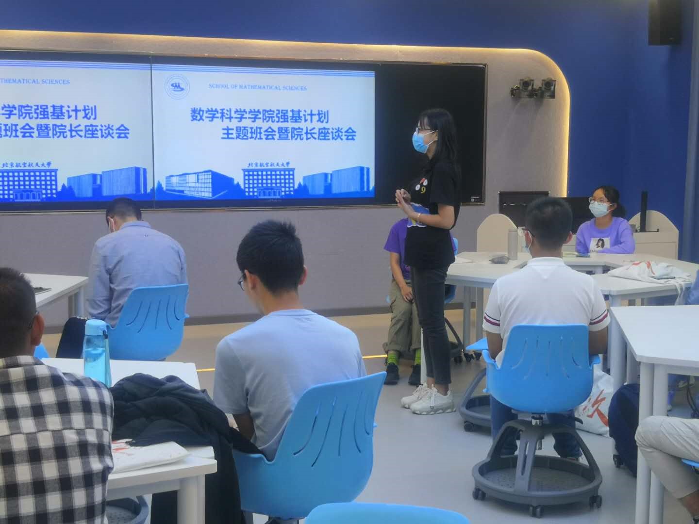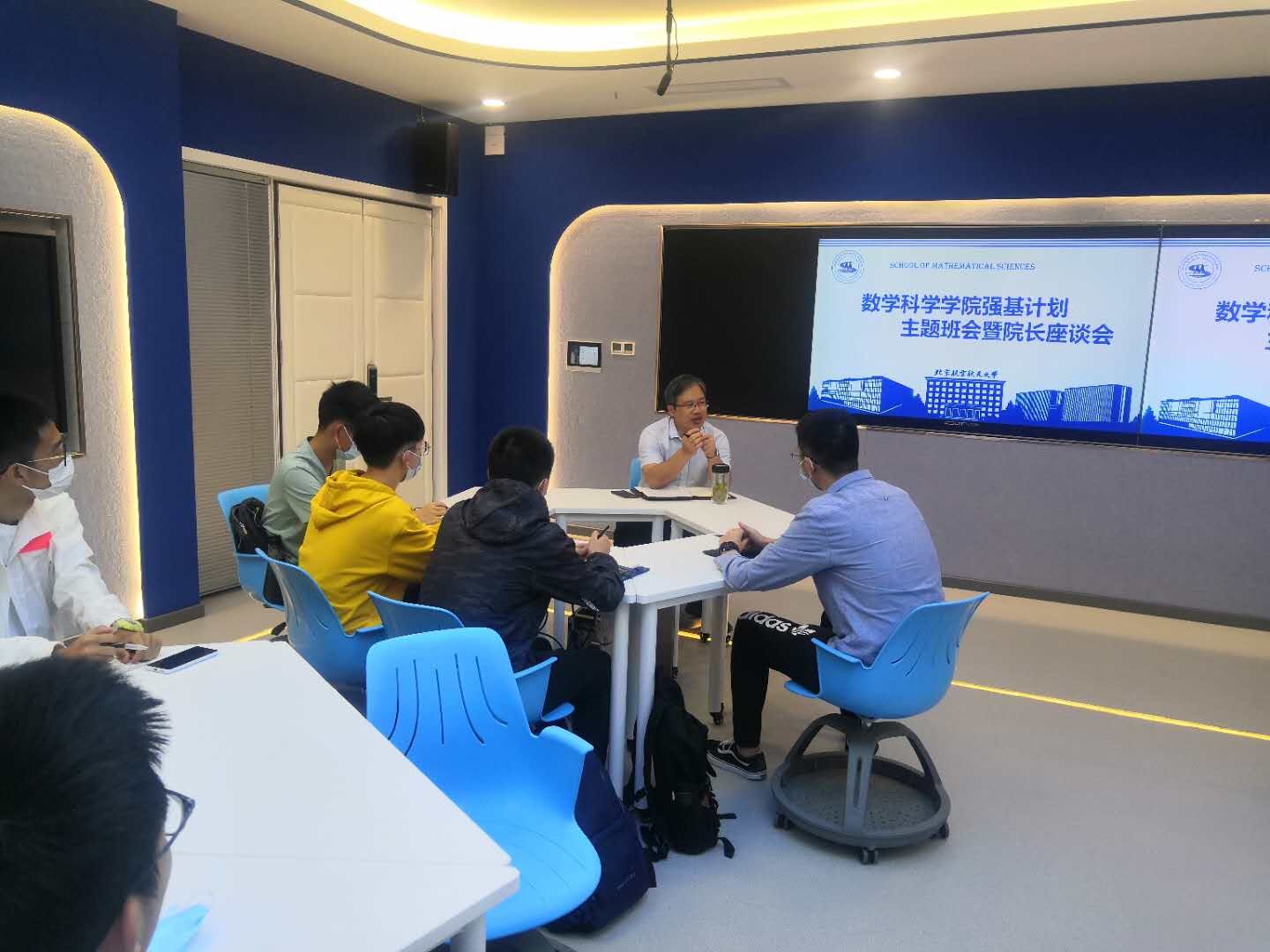9月16日,William威廉经理、2020级强基数学班班主任韩德仁同数学学院强基计划新生于数学学院智慧教室E405开展首个“学习日”班会,为新生们解答有关数学专业以及未来成长轨迹的疑惑,上好开学第一课。