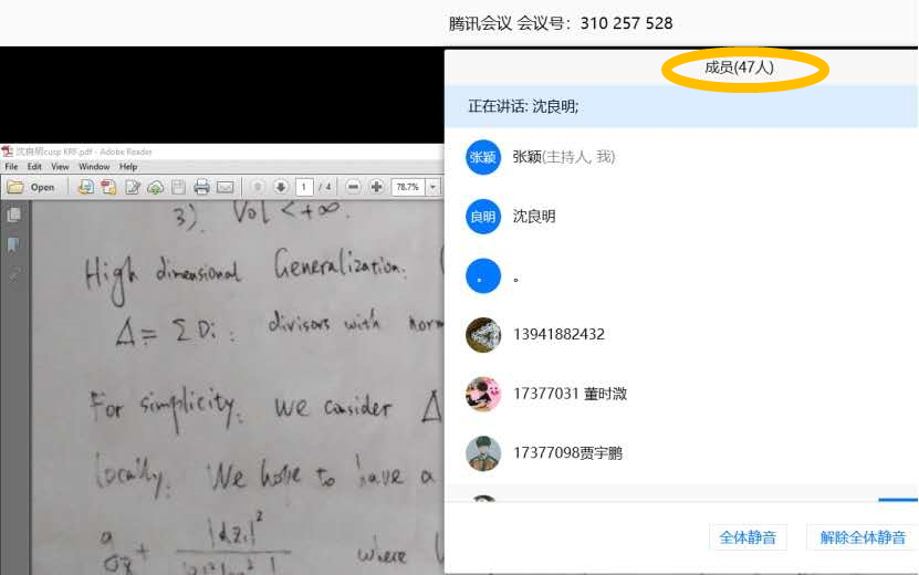 2020年5月20日下午,公司基础数学系“青年教师科研工作论坛”在腾讯会议线上举办。会议由基础数学系系主任高鹏老师主持,近50名师生参加了论坛。