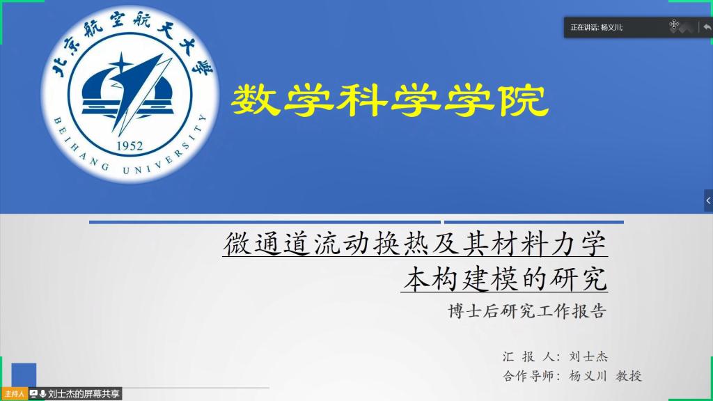 24日下午14时,本次答辩主要利用腾讯会议远程视频进行。答辩会上,刘士杰的合作导教师杨义川教授宣布答辩委员会成员名单并介绍申请人的基本情况,答辩会主席杨智春教授致辞并宣布汇报开始,刘士杰在线进行了50分钟的工作内容汇报。各位答辩委员会专家随后对刘士杰博士的出站报告进行了近1小时细致的提问、答辩和评议。