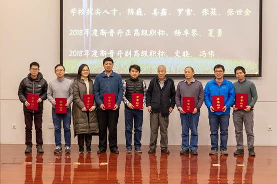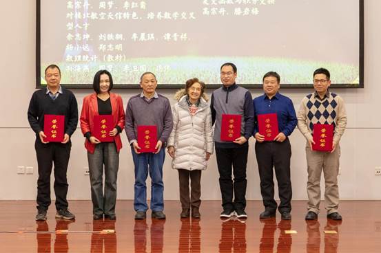 接下来,数学公司党委书记袁星宣读了2018年度在人才队伍、教学、科研和党建等工作中获得各级荣誉奖励的教师名单,并邀请参会嘉宾为获奖代表颁奖。数学学院的教师承担着全校所有数学类课程的教学工作,他们在三尺讲台上辛勤地传道授业,无私地奉献着青春芳华,为北航的人才培养奠定扎实的理科基础。在教学方面,本年度共获得两项国家级奖励和三十余项校级奖励;在科研工作方面,数学学院涌现了一批敢想敢干的年轻教师,在自然基金申报等科研工作中取得了很大的突破。获奖教师代表夏勇老师发表感言。