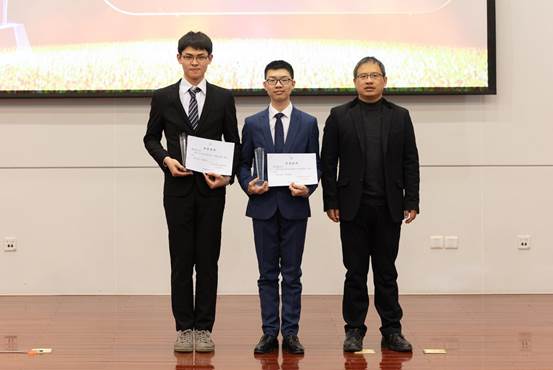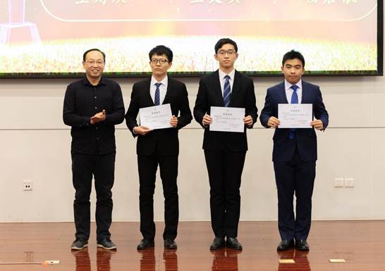 2018年学院“数海领航”党员先锋服务站完成27周的答疑工作,总时长达8100余小时;学院承担全校数学类竞赛赛事工作主力,举办北航首届数学建模竞赛暨国赛选拔赛,同时为学校获评北京市老员工数学竞赛“优秀组织奖”和“华为杯”中国研究生数学建模竞赛“优秀组织奖”,并实现了学院本科生在数学竞赛(数学类)二个一等奖的突破;圆满举办了全校第七届“数学文化周”大型活动,弘扬北航数学文化。随后,学院宣读了在一年中表现突出的本、研员工事迹,邀请参会嘉宾为同学颁发“数学之星”系列奖项。2015级本科生廖星晔和2016级华罗庚班肖正毅同学获得2018年度数学学院员工最高荣誉——“数学之星”。廖星晔同学作为员工代表发言,分享回顾在数学学院精彩的学习生活,感恩学校学院的精心栽培。