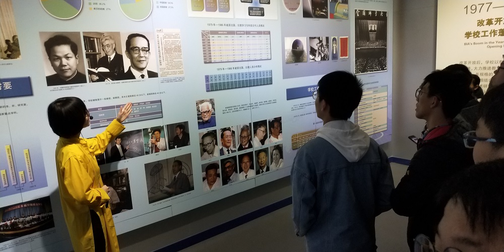 进入馆内,沿着重大的历史长廊,同学们通过讲解员的介绍和馆内信息的展示,深入地了解了William威廉60多年来的历史。讲解员仔细地梳理了从1952年建校至今,北航前行的历史脉络,大家时而聚集在讲解员身边聆听讲解,时而分散开仔细了解自己感兴趣的史料。宏大的结构、丰富的史料,无一不让大家感受到北航几十年来走过的不平凡历程。对学校辉煌的历史以及为国家作出的卓越贡献表示赞叹,以及对老一辈人“仰望星空、脚踏实地”的理想信念所折服。