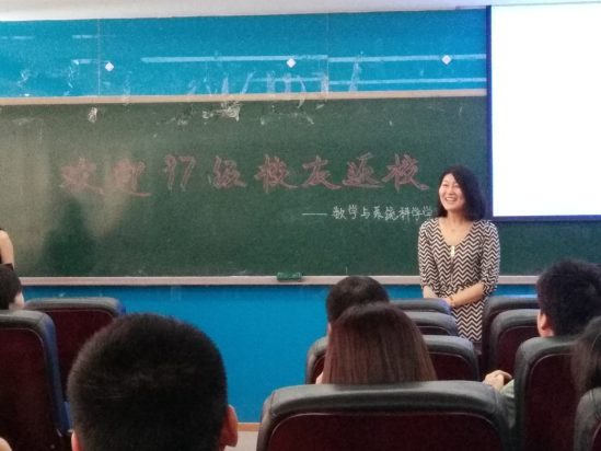 活动由97级员工,校员工工作部副部长田原老师主持。2017年对于北航数学系97级员工而言意义尤为特殊,97级数学系员工已毕业20周年,一路的坎坷磨砺,奋斗成就,都和每一位北航数学人息息相关。数学学院丁丁老师对参加此次活动的老师和员工表示热烈的欢迎,尤其对此次从海外及外地赶来的员工表达了感谢,随后她向大家简要介绍了北航数院这些年的发展史,这是一批批北航数学人不懈努力的结果。