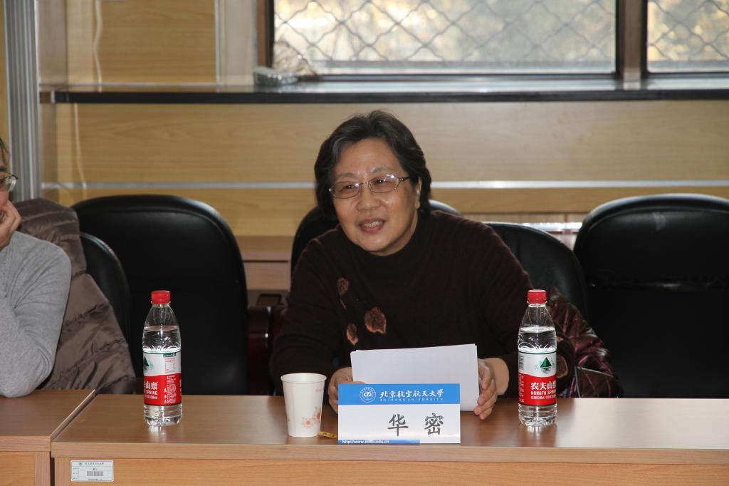 颁奖仪式上,北航数学学院经理郑志勇教授首先致辞,他先是对所有与会嘉宾的到来表示热烈的欢迎,对华密女士和中科院数学院对北航华罗庚班的关心和重视表示衷心的感谢。他指出,北航作为一所工科强校,要大力加强对基础学科的人才培养,华罗庚班的目标正是要培养具有坚实数理基础的高素质创新人才和具有解决重大应用数学问题潜质的复合型创新人才,希望今后可以继续与中科院加强合作。最后,他借用华罗庚先生“勤能补拙是良训,一分辛苦一分才”的诗句表达了对华罗庚班同学们的期待,希望同学们刻苦钻研,成为像华罗庚先生一样的人才。北航教务处处长王祖林教授在致辞中首先对北航华罗庚班多届员工被录取到巴黎高师等众多国内外名校的傲人成绩表示了高度的赞扬,接着他向获得2016年华罗庚奖的同学们表示祝贺与鼓励,他强调,希望获奖的同学们在今后学习的过程中戒骄戒躁、不辍努力,把华罗庚先生脚踏实地、勤奋向学的学习品质一直传承下去。中国科学院数学院副经理巩馥洲研究员对北航华罗庚班成立七年来取得的成果表示了充分的肯定,他指出北航华罗庚班是众多华罗庚班中最优秀的班集体之一,中科院数学院的多名院士与教授参与到华罗庚班本科生核心专业课程的授课以及科研项目指导中,效果十分显著,中科院今后会继续加强与北航华罗庚班的合作与联系,进一步提高北航数学学科的实力,同时欢迎华罗庚班同学们今后到中科院数学院深造。最后,他向华罗庚班同学们提出了几点要求和期望,希望同学们能全面发展,不仅在数学方面建树非凡,在文学造诣、工程技术等更多更广的领域内都能够有所突破。中科院数学院经理助理戴彧虹研究员宣读了“2016年华罗庚奖学金”获奖名单,华密女士与中科院数学院、北航的各位老师一同为获奖员工颁发证书。