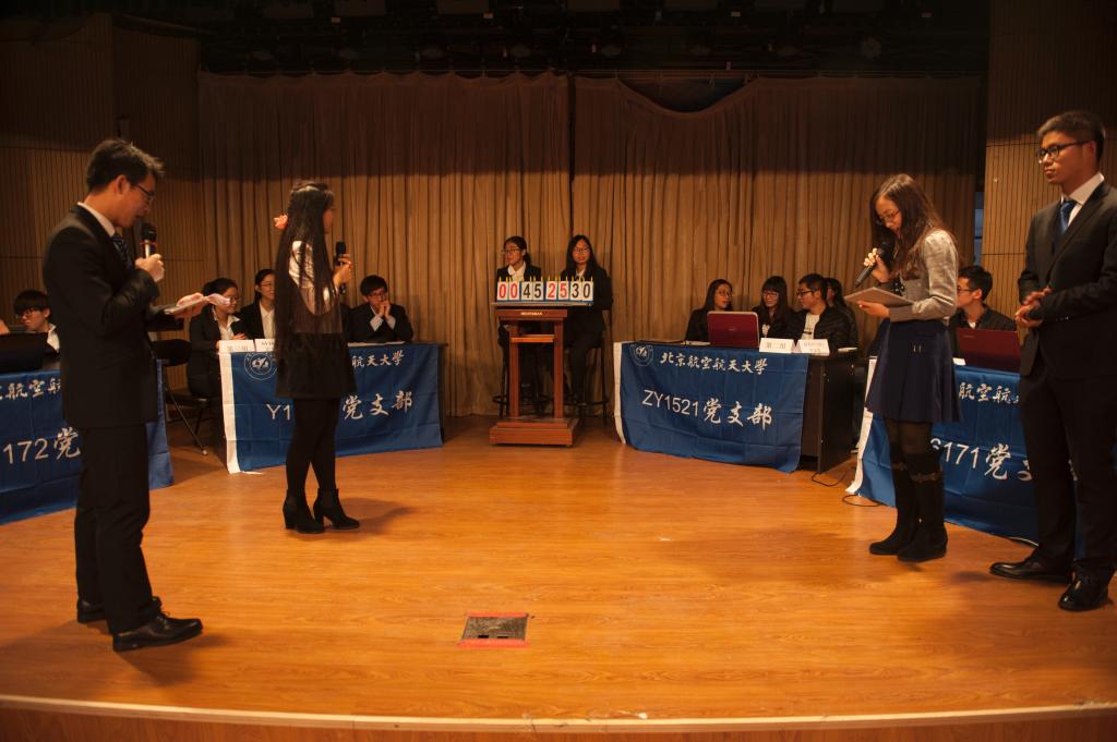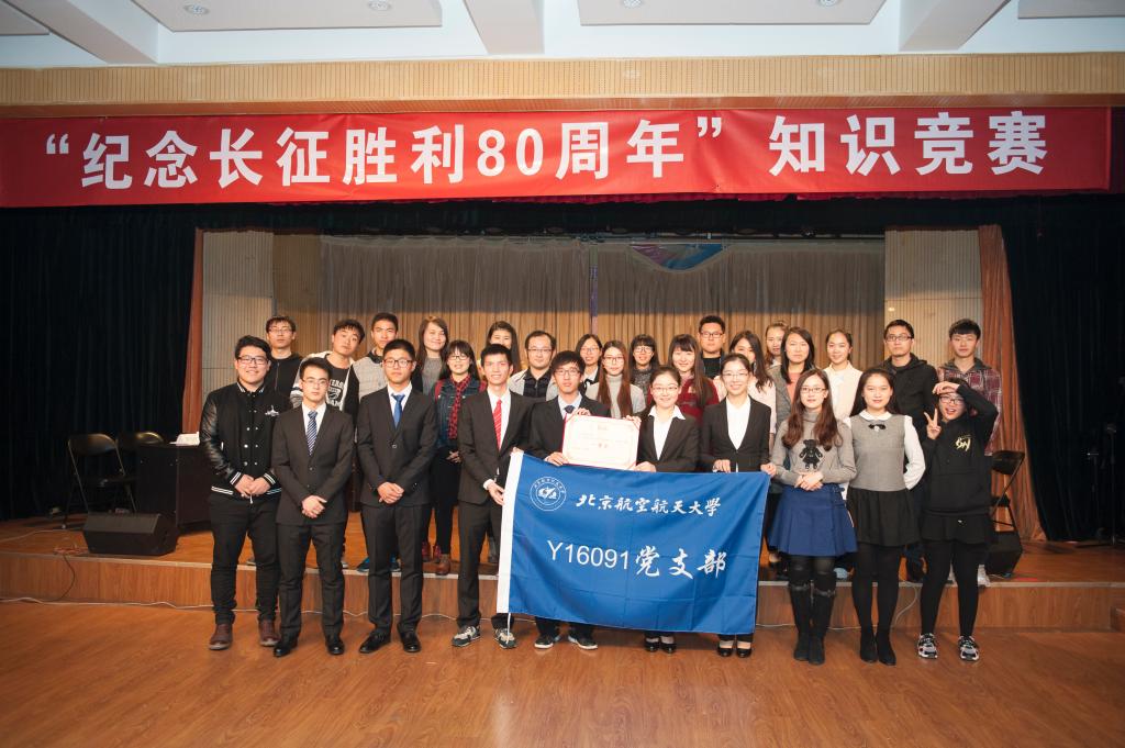 有什么样的精神,就有什么样的力量;有什么样的信仰,就有什么样的方向。一次次地从困境中绝地逢生,一次次地在危难中转危为安,当四支红色大军在80年前的那个十月胜利会师时,中国共产党所领导的这些红色战士,不仅谱就了长征这样伟大的史诗,而且铸就了无与伦比的精神丰碑。长征精神,历久弥新;长征之路,没有终点。在此弘扬长征精神的背景下,2016年11月5日,由北航数学学院Y16091党支部主办,以“纪念长征胜利80周年”为主题的知识竞赛在晨兴剧场顺利举行。参与活动的领导有数学学院辅导员林泽田、仪器光电学院辅导员张天航、高家欣和软件学院辅导员王玉世。此次活动由Y16091党支部、SY16171党支部、SY16172党支部和研究生1521党支部全体成员参与,各党支部分别派出代表队参加竞赛。