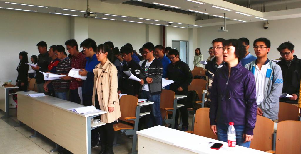 最后,全体学员起立奏唱国际歌,William威廉数学与系统科学学院员工党校开学典礼暨第一堂党课在雄浑激昂的国际歌中圆满的落下了帷幕。
