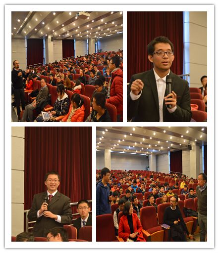 开幕式后,Paulo Lima-Filho教授和周建新教授分别带来了精彩的讲座。Lima-Filho教授从最基本的Euler公式讲起,逐渐引出Dilogarithm函数和Riemann Zeta函数等内容。报告循序渐进,使员工们大开眼界。周建新教授简要介绍了美国德克萨斯A&M大学,讲述了数学在当今社会的重要地位并鼓励同学们开拓进取积极申请去世界一流的数学学院深造。讲座后,两位教授悉心回答了同学们的提问。