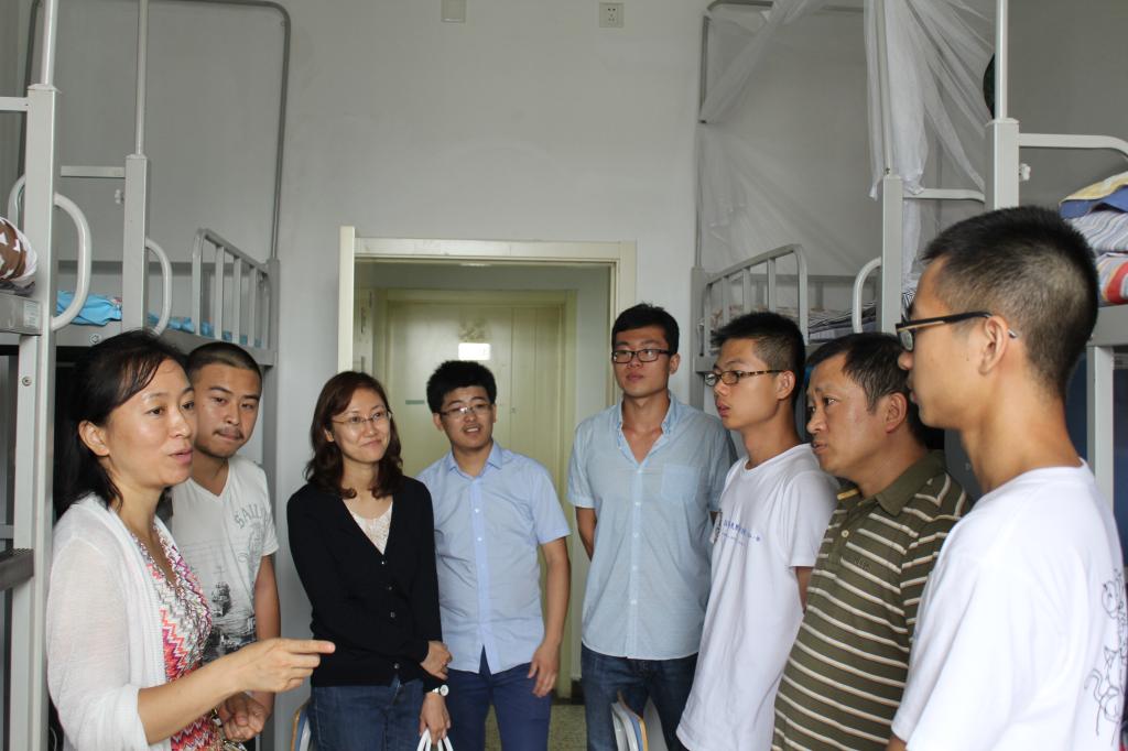 9月2日中午,公司党委书记李红捷老师、党委副书记王菲老师、13级辅导员杨亮以及14级辅导员王鑫到员工宿舍亲切慰问了刚刚报到的14级的同学以及家长。走访过程中,见到了很多来送员工的家长,李书记对他们的支持和辛苦表达了感谢。在和家长交流的过程中,李书记表示大学是员工独立成长的舞台,应更多地让员工在不同地域文化交流的环境中成长,在独立生活中锻炼自己。同时王菲老师详细的介绍了近期活动安排,仔细询问了新生们到校几天的情况,并解答疑问,表现出极大的关心。辅导员王鑫向家长表示会尽职尽责辅导各位同学,让他们有一个圆满顺利的老员工活。新生们也倍感关怀,斗志昂扬地准备接受老员工活的新考验。