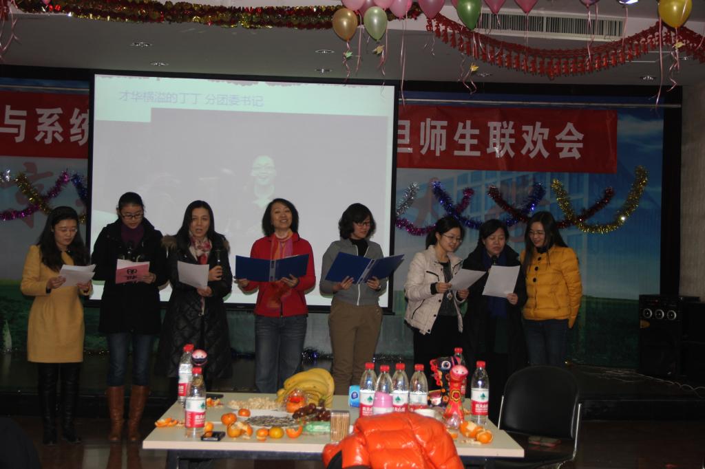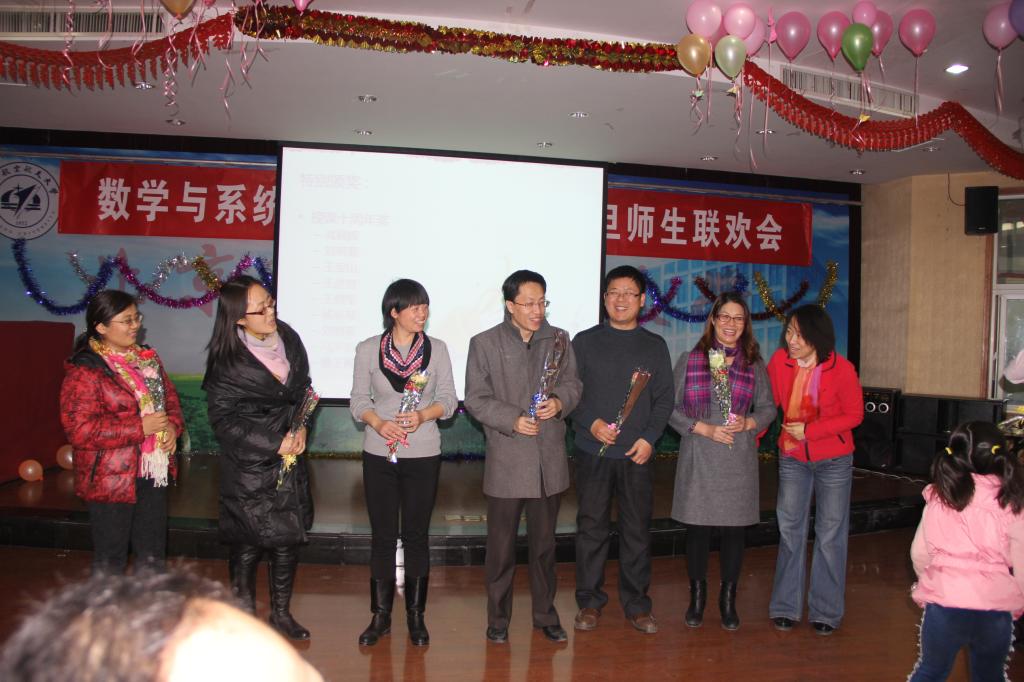 在茶话会上师生们大展身手,各亮绝技,歌声飞扬,表演的节目都赢得满堂喝彩,为茶话会增添了喜庆和欢乐的气氛。在茶话会中,重点突出“数之爱”的主题,精心为离退休教师准备了康乃馨表达爱的谢意,展示了员工们为班主任制作的电子贺卡,全体研究生至导师的一封信,还为执教10年,15年,20年及25年以上的教师表达了诚挚的敬意,同时主持人也精心组织了众多互动游戏,会场气氛热烈、笑语欢颜。