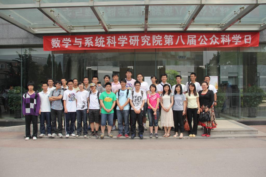 2012年5月19日,北航10级、11级华罗庚班应中国科学院数学与系统科学研究院的邀请,参加了研究院主办的公众科学日活动。在活动中,华罗庚班的员工们饶有兴趣的听取了多场报告,报告内容涉及理论数学、计算数学、数学与哲学、数学与云计算、数学与地质灾害、数学与系统生物学等主题报告。首先,著名的数学家、华罗庚数学奖得主王元院士用通俗易懂的语言,为在座的观众介绍“哥德巴赫猜想”,并且用简洁的语言介绍了“哥德巴赫猜想”中的一些推论和命题的证明。之后研究院最年轻的院士席南华院士为员工做了“认识数学”的主题报告。在两场报告之后,研究院专门设计安排了三场数学与其他交叉学科的主题报告,分别是金雅芬主任的“未来十年云计算讲给社会发展带来革命性的变化”的报告,刘勇副研究员的“生命的乐章——后基因组时代的系统生物学”的报告,以及刘伟助理研究员的“大规模科学计算与地质灾害的模拟”的报告。报告中,在听观众兴趣浓厚,尤其是提问互动环节,华罗庚班员工思维尤其活跃,提出不少问题。 活动之后员工们仍然激动地聊着此次活动的内容。这次公众科学日活动再一次开拓了华罗庚班员工的视野,也为员工与大师级人物交流提供了宝贵的机会。整个活动以员工们在研究院思源楼前合影结束。