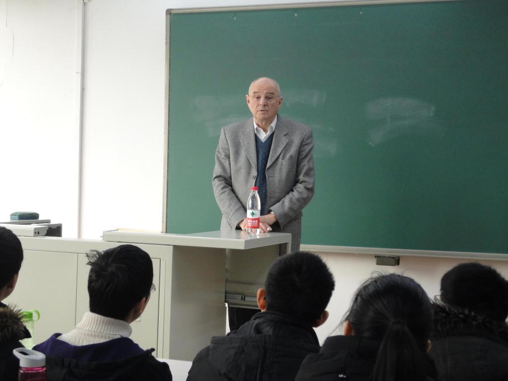 2月22日下午,数学与系统科学学院首位讲席教授Peyriere Jacques为沙河校区华罗庚班二年级员工开课。 数学学院经理郑志勇教授陪同Peyriere教授一起与华罗庚班同学做了面对面的交流,就教材及课程设置等与员工做了充分的沟通,华班员工对外籍教授的到来表示热烈欢迎,希望新学期里在Peyriere教授的带领下能更好更快的融入进国际授课环境。 数学学院首创讲席教授机制,是以提升人才培养质量为核心点,以提供良好国际化学习环境为支撑,全面促进拔尖创新人才成长。Peyriere教授系数学学院首位海外讲席教授,也是北航“理科人才培养基地国际教学科研团队”引智平台首席科学家,他是最早进入分形领域的专家,是该领域国际著名学者和重要领头人。Peyriere教授在该领域做出了众多杰出贡献,其中,Peyriere概率被誉为巴黎第十一大学50年来100项最重要成果之一。此次作为讲席教授前来北航工作,Peyriere教授将全职为数学学院本科生和研究生授课,在建立北航与巴黎十一大的国际合作方面,Peyriere教授也将发挥重要作用和影响。
