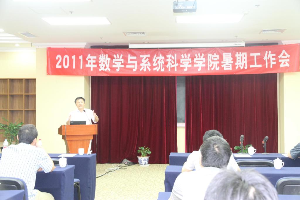 8月28、29日,数学与系统科学学院召开2011年暑期工作会。会议组织与会教师认真学习学校2011年暑期工作会精神,并就学院教学质量与工作量的评估指标、学院的特色学科和创新方向、学术评价体系、教师发展及青年人才的引育四个方面展开深入研讨。副董事长郑志明教授、学院全体教职工出席会议。郑志明副董事长为会议作主题发言,强调数学学院承载三个一级团队建设,任务艰巨,在有限资源条件下,应严抓教学质量,强化课程设置;教师发展和人才培养加快国际化进程;做好学科交叉研究,扩展应用数学的交叉研究范围,做到有的放矢等,并就学院发展现状与教师进行了交流,表示关爱员工,教师的发展将成为学院发展的新基础,也将成为学院再上新台阶的有力保障。学院新上任四位经理助理在会上分别作了述职报告,分别就学院本科教学、团队建设、学术交流、队伍建设等方面阐述了新思想。学院郑志勇教授、贾英民教授、刘铁钢教授、李尚志教授就学院发展整体态势和学院发展路线图、学院科研情况现状和未来学院科研发展点、研究生教学和人才培养规范化设置、学院教学整体情况作了精彩报告。会议期间,教师分为两组进行了自由讨论,就学校暑期工作会精神和郑志明副董事长的讲话等进行了深入的学习,同时也就学院的教学设置规范化、团队建设等进行了广泛的探讨。此次会议的顺利召开,为学院今后的发展规划了蓝图,使教师的个人发展能与学院的整体建设紧密结合,极大的调动了教师工作积极性,将成为学院今后快速发展的基石。